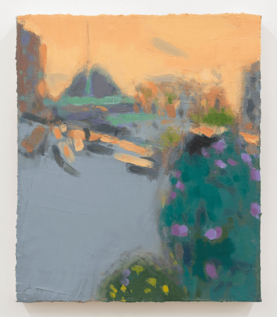 Contributed by Jonathan Agin / Andrew Shea’s work in recent years has evolved from geometric, high-contrast scenes of city bustle to impressionistic vignettes of home life where hues interact with considerably more freedom. Steeped in a quiet domesticity, the paintings in “Grocery Slips” at JJ Murphy Gallery seem idealized only at first glance.