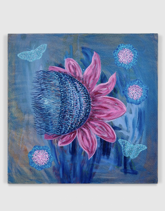 Stone’s process begins with ink sketches that progress from thin acrylic washes to bold oil gestures, working a kind of metamorphosis on the canvas. Her gestural strokes construct what she describes as “dynamic space” in which vegetation achieves an almost aggressive vitality. These are not the delicate watercolors of traditional botanical illustration, nor are they the domesticated flowers of still life painting. Instead, Stone’s flora have an uncanny, preternatural presence, neither entirely real nor altogether imagined. They seem to bridge observation and dream.