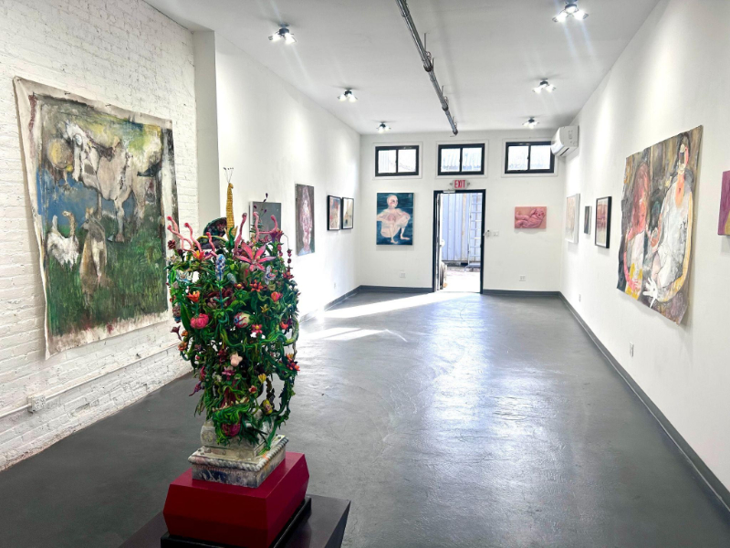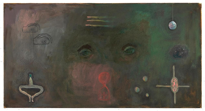 Contributed by Lucas Moran / Maybe death isn’t final but simply a door leading into another room. That feeling ran through “Often I am Permitted to Return to a Meadow,” an excellent group show at The Active Space in Bushwick curated by Patrick Bower and Robert Zurer of Immaterial Projects. It tapped into whatever lies just beyond perception: the subconscious, the occult, the spirits, the talismans, the circus freaks. Everything half-seen or half-remembered was allowed to take shape. If contemporary painting has drifted away from figuration and identity, this show suggested we may be heading towards something more concealed – art that conjures rather than describes, call it hiddenist painting, embracing what is buried, invisible, or occulted, where death, memory, and imagination loop into one.