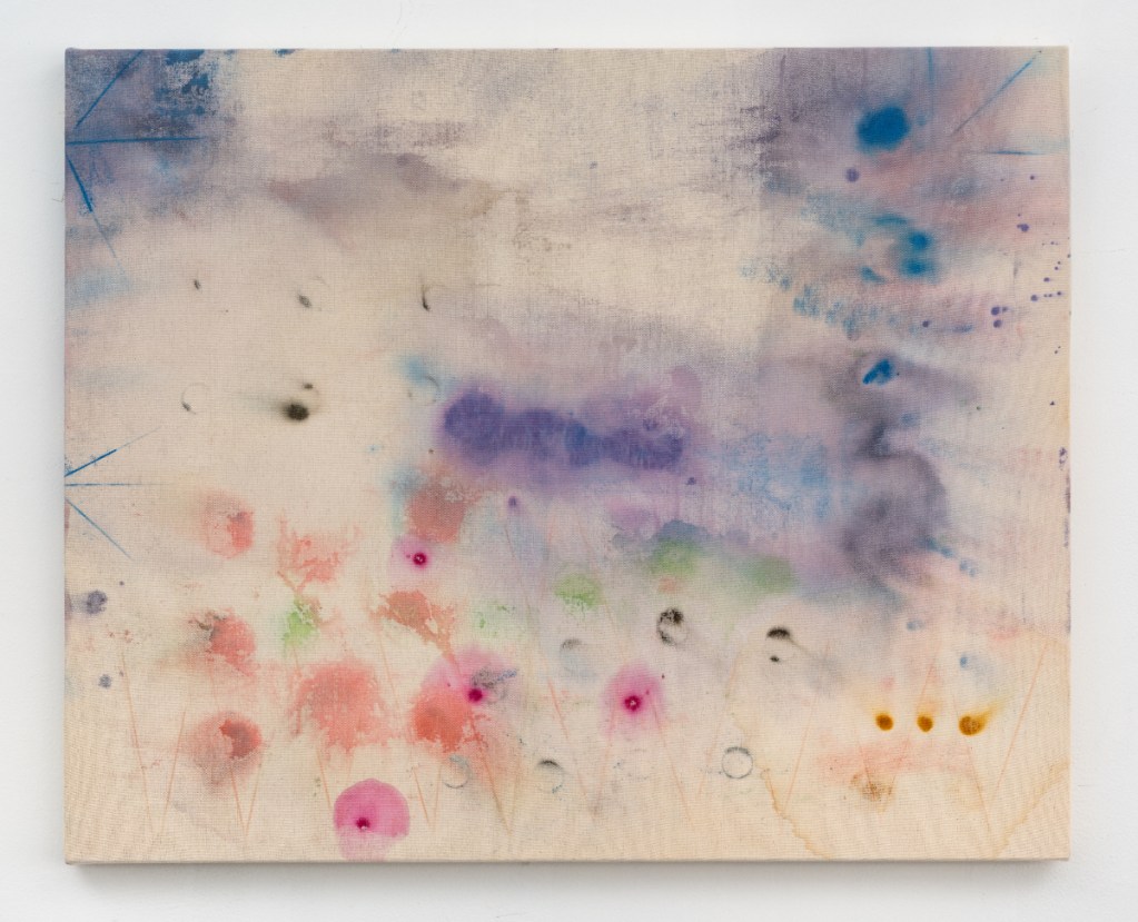 Ariel Mitchell’s paintings balance abandon with restraint. Working in oil on raw linen, she begins each piece with a white underpainted form that becomes the armature for everything that follows—color, gesture, eruption, and pause. This frees Mitchell from the traditional edges of a canvas; the initial shape provides structure without confinement, allowing the movement of the painting to extend beyond the boundaries of the linen even as the linen remains its support.