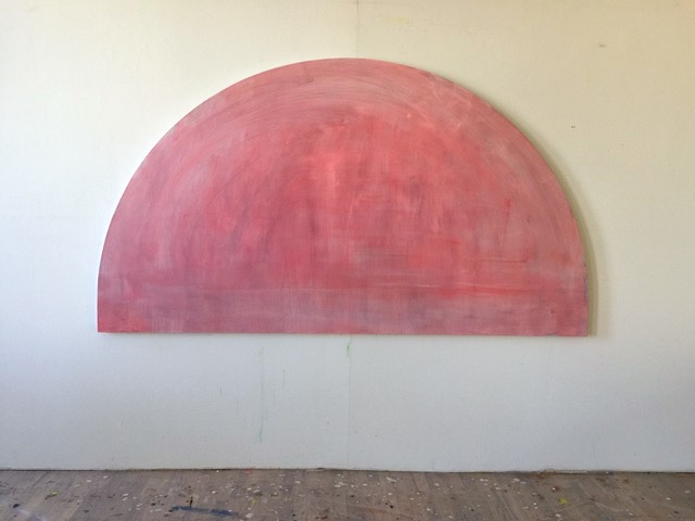 NS: Can you share your process of painting Stage in a Red Field? You told me you struggled with this for months.