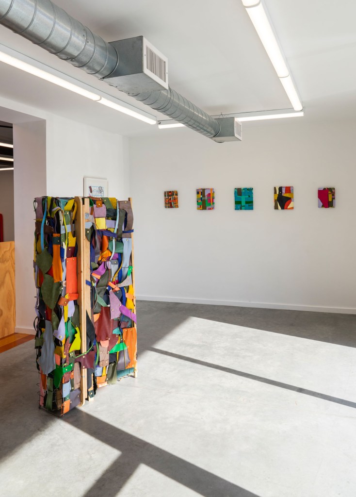 Owen: The first work of yours I encountered wasn’t leather, but a log with painted canvas nailed onto it. The color and gesture feels connected to what you’re doing now.