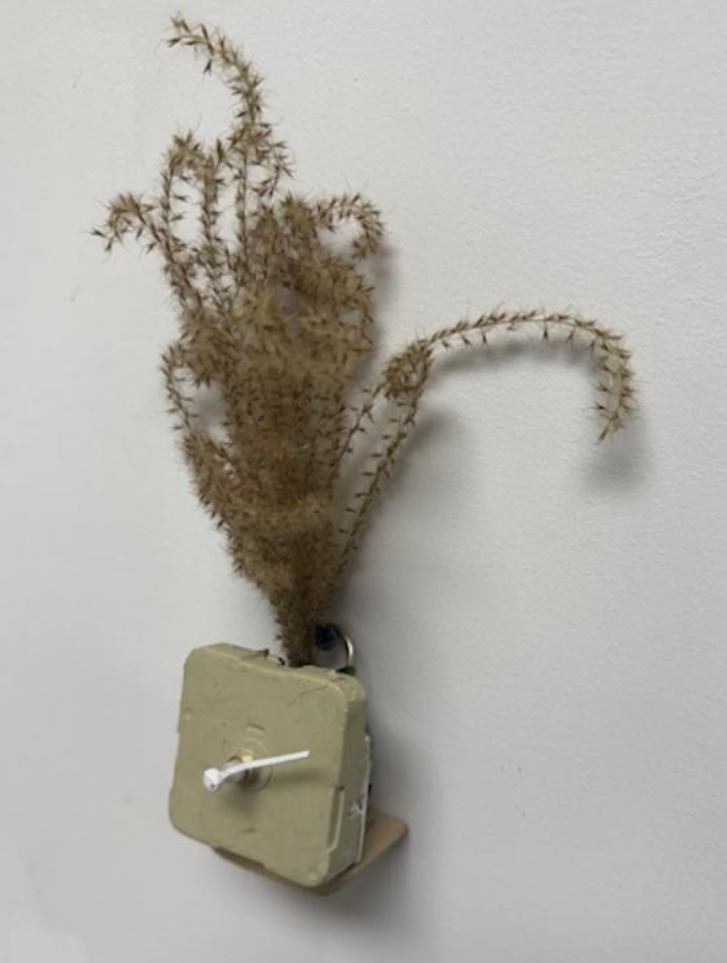 The pureness of his thought and execution seems to matter more to him than the pureness of the work’s materiality. His empathic skill plants the same priority in Western viewers. He can complete thoughts with any mere scrap and edit an otherwise nondescript smear of paint to an essence that advances the specific composition he has in mind. A durational aspect is there, but it is integrated and not foregrounded; pieces seem to have simply become rather than to have been consciously created. In the middle room is a tiny clock recording only seconds as it holds a shank of beautiful, dried weed for us to ponder. Like the show overall: it offers a quiet moment to appreciate the subtlety and complexity of Choong’s chosen city.