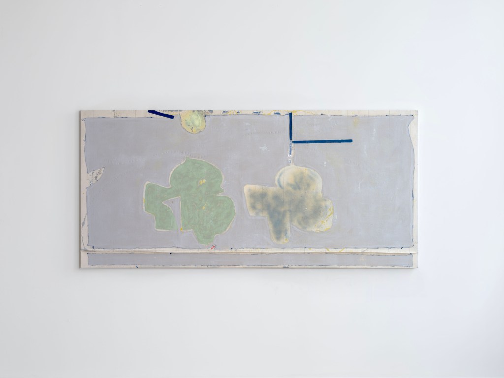 Untitled 1 (Bonded by the spirit of doubt), 2026, acrylic and oil on sewn fabric, 42 x 90 inches (photo credit: Sebastian Bach)