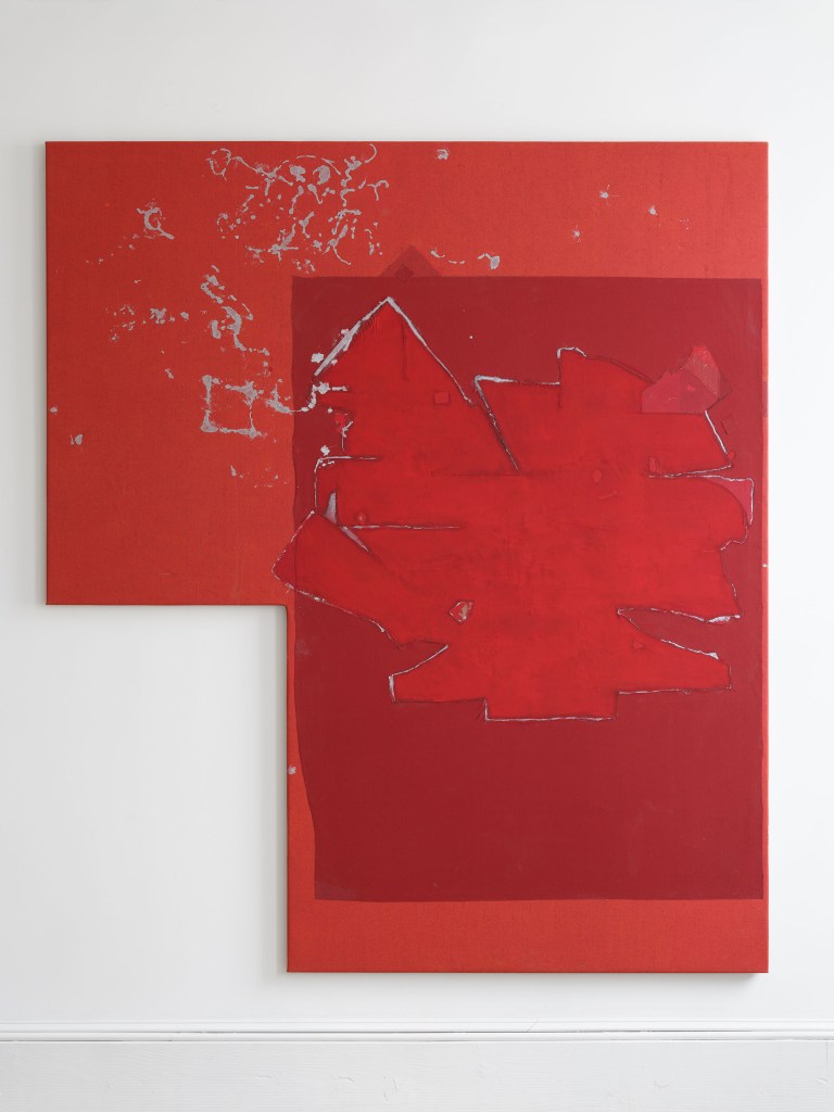 Untitled 20, 2025, acrylic, oil, and enamel on canvas , 58 x 56 inches (photo credit: Jason Loebs)