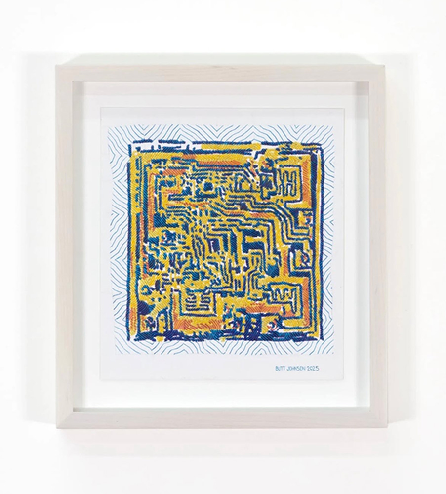 Halsey McKay Gallery: Butt Johnson, Untitled (Integrated Circuit), 2025, marker, gel ink, ballpoint, “sparkle pop” ink on Bristol paper