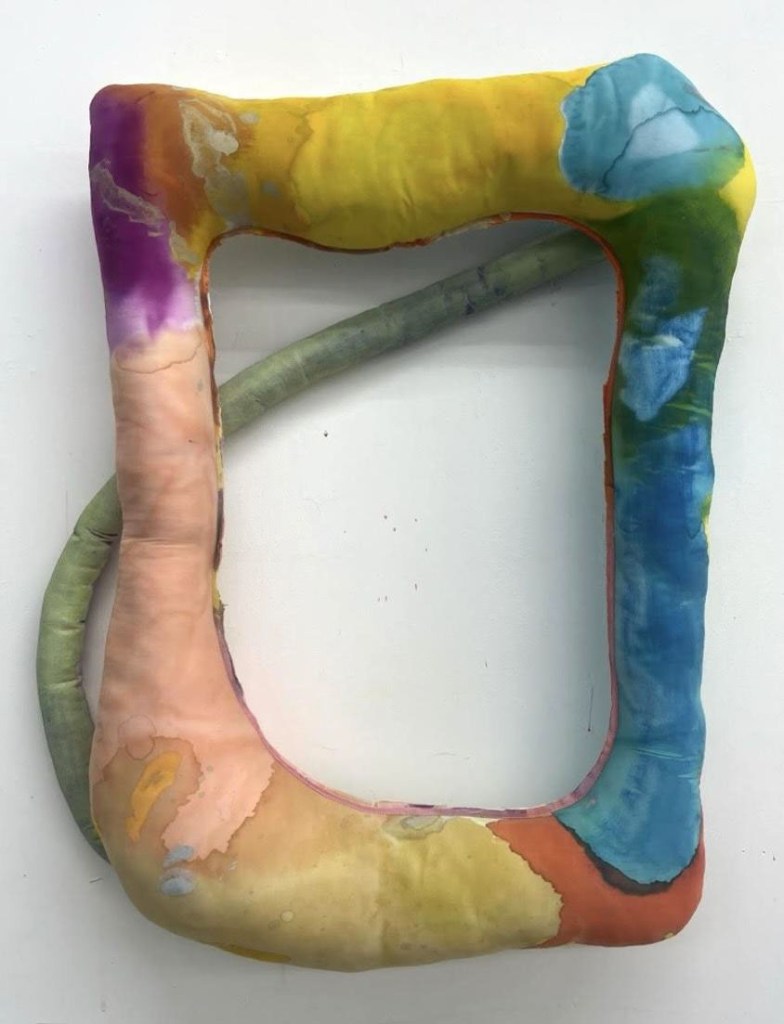 Meg Lipke, Remembrances, 2025, fabric dye and acrylic on muslin with fiber fill and thread, 28 x 20 x 5 inches