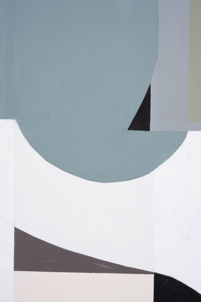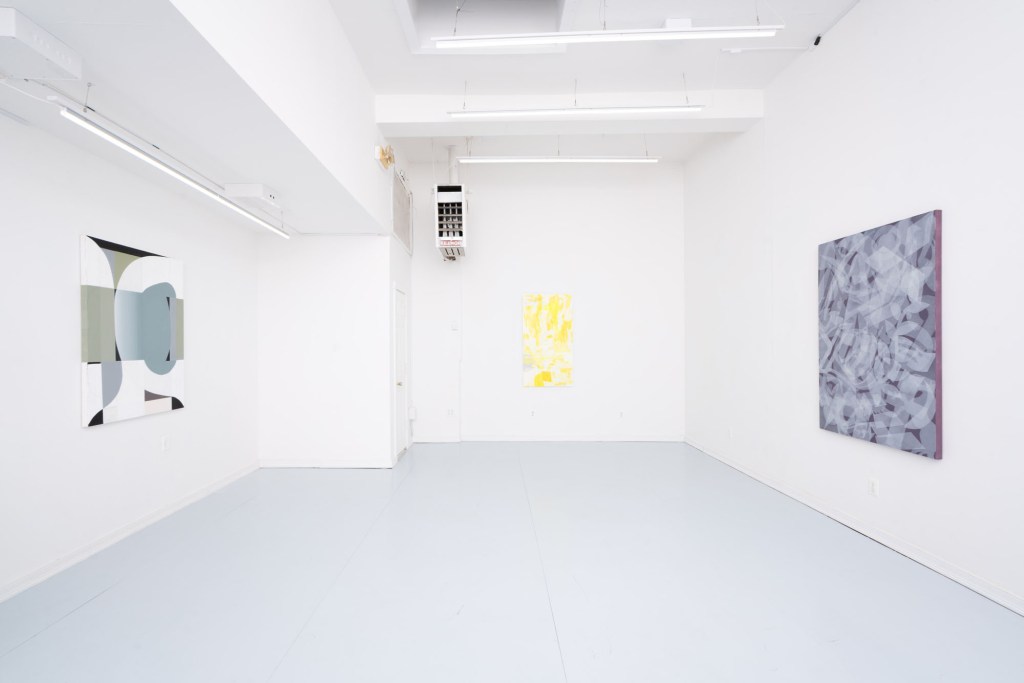 LG: Well, I always look at my paintings being like a puzzle and putting it together. So when I start, I just start drawing on the canvas directly to allow things to start to occur. And it starts to get edited down, and I end up with whatever forms I can get. It’s not necessarily intentional. I think we might all have that in common, except maybe Adam is more programmatic, perhaps, because he has certain images that he uses. So I think of it as, you know, just trying to look at some kind of harmony in the abstraction.