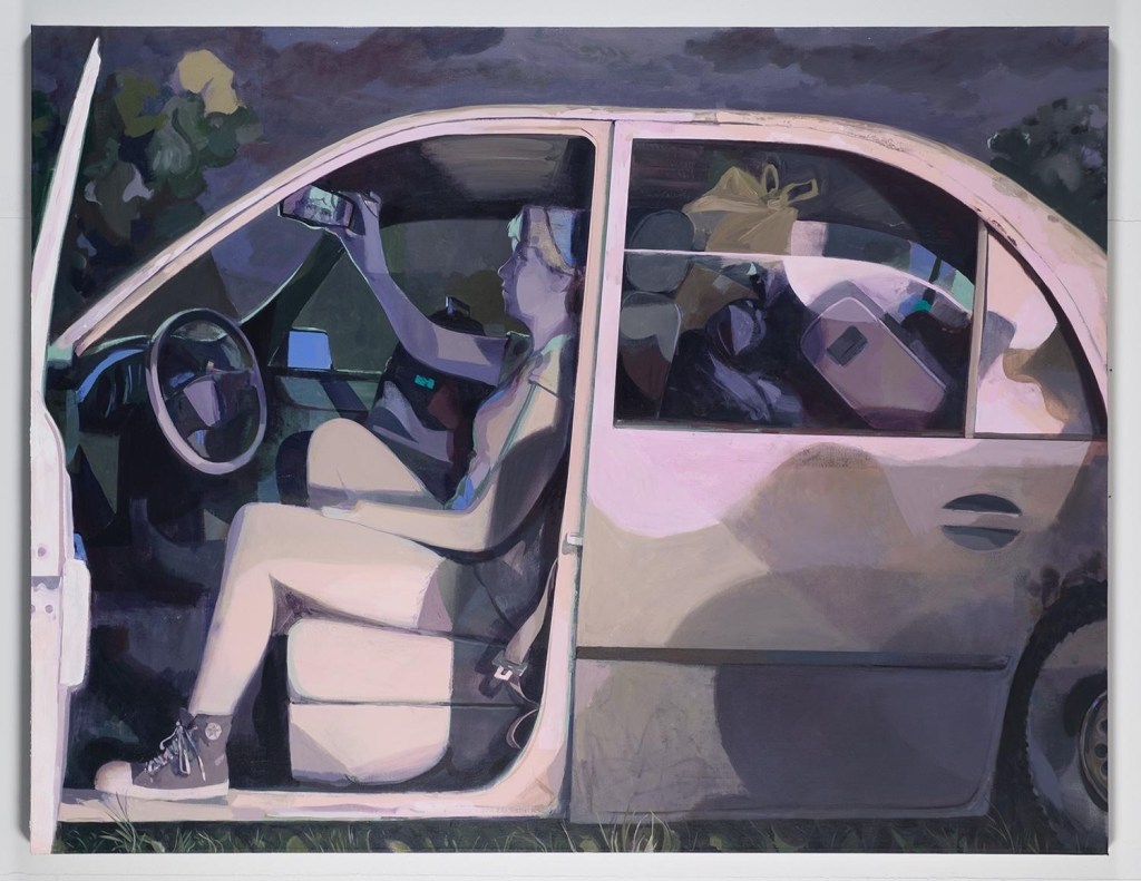MB: That scene in Dawn came first. I love the way you’re reading it. Works often send me back and forth, or like you start in one mode and evolve into another. In this case, I wanted a painting that had a strong connection to the video since they were going to be shown together. The woman in Before Work isn’t Dawn, but they have a lot in common. I wanted to show her situation through the stack of her stuff in the back seat, which has an “everything she owns” feeling. Dawn took five years to make, and after all of that time living in her world, it made a painting like this possible.