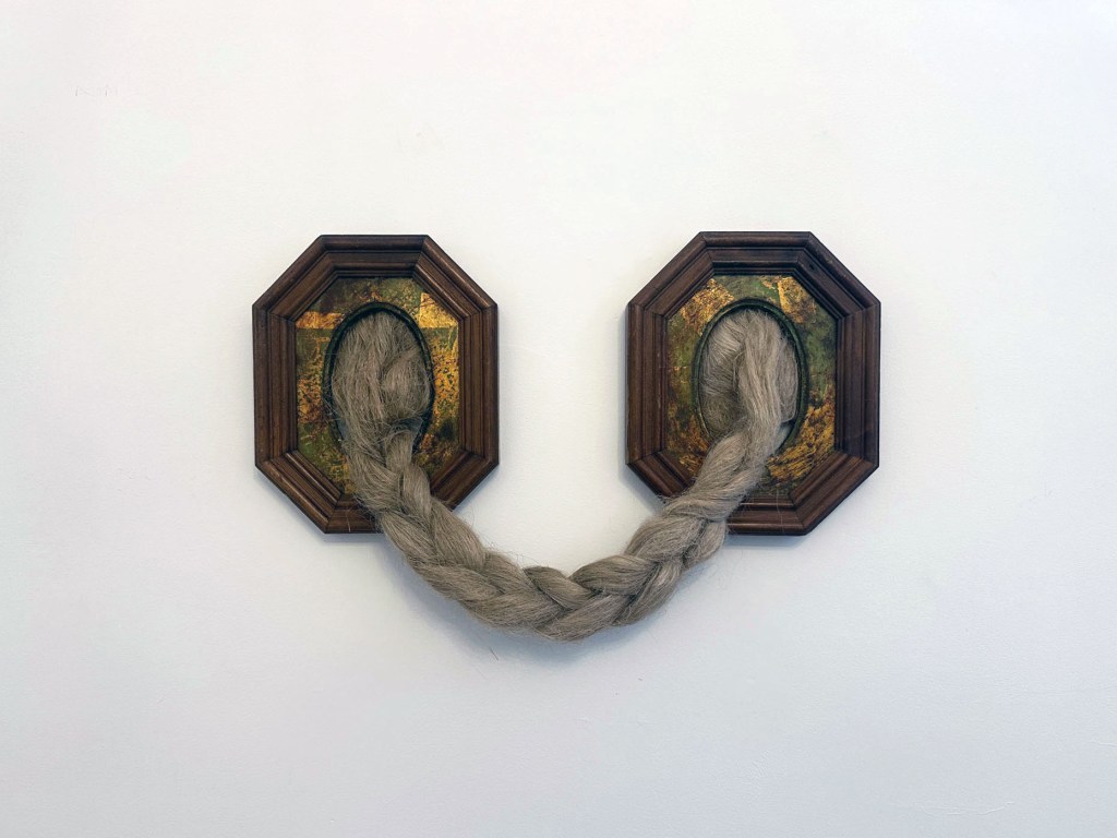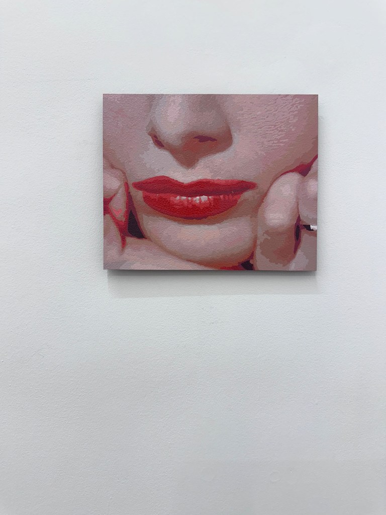 Caroline Zurmely’s paintings, composed with makeup, have the force of a Gen X mom balancing work with free-range parental zeal. At first glance, the works read like pixelated closeups of a personal scrapbook but on further inspection acquire a painterly materiality as they seem to float out from the wall. The paint itself transforms the image from casual clipping to commemorative object. These works would be at home in a 16-bit world as unique physical states that require the painted rectangle to be activated and archived.