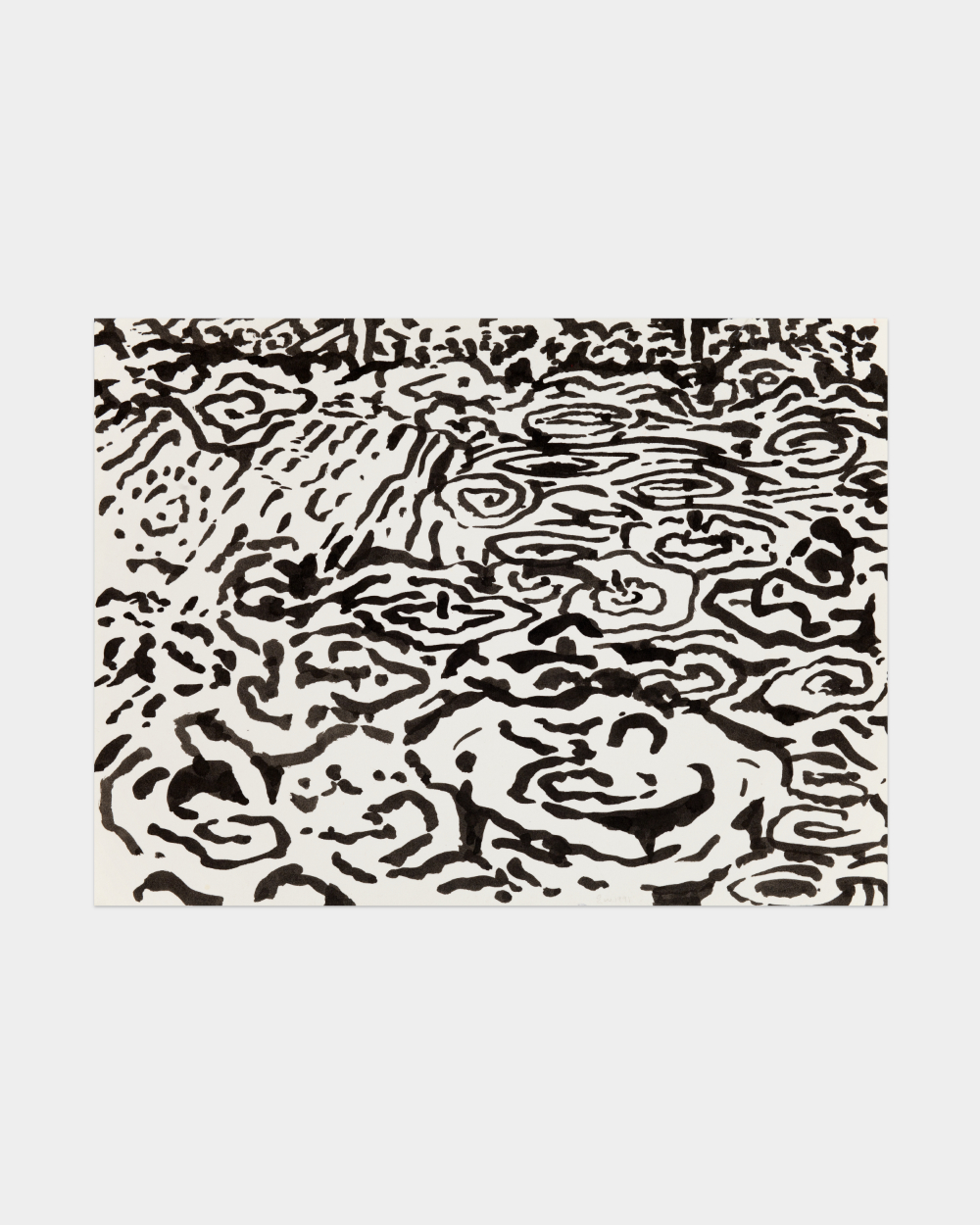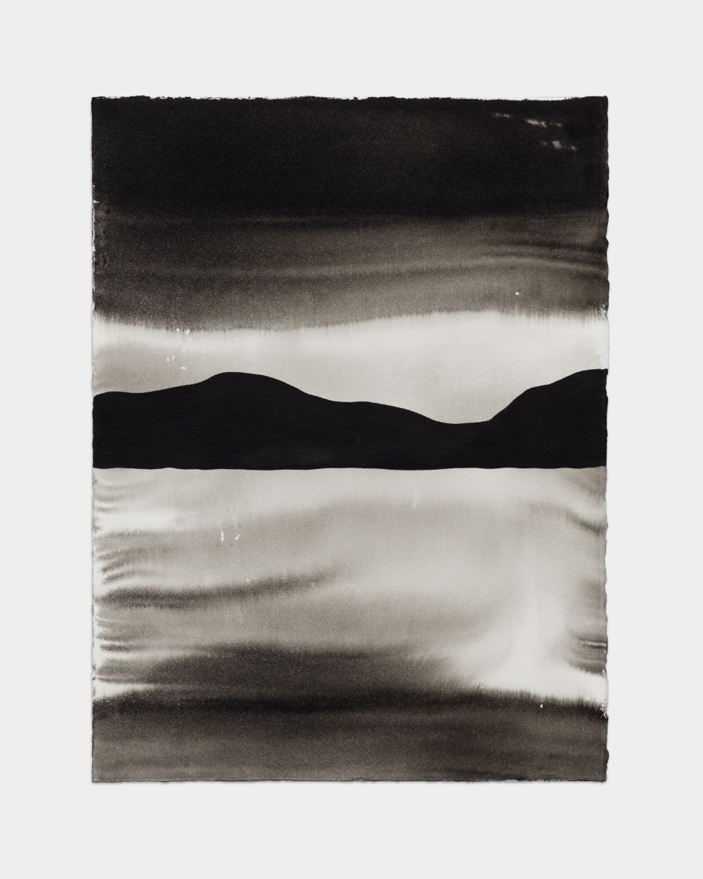 Contributed by Sharon Butler / Few artists – even among those dedicated to the landscape – would look at a body of water and think, “OK, I’m going to spend the next 30 years painting this.” Yet, year by year, Eric Wolf has done just that, driven by a fascination with the daily transformation of water’s surface, its complementary relationship to air, its connection with people, and the peculiarly seductive power of black ink on paper. “Two Waters,” on view at Abri Mars, spans three decades of Wolf’s en plein air ink painting, which he did exclusively at two sites: a pond in Chatham, New York, and a lake in Rangeley, Maine.