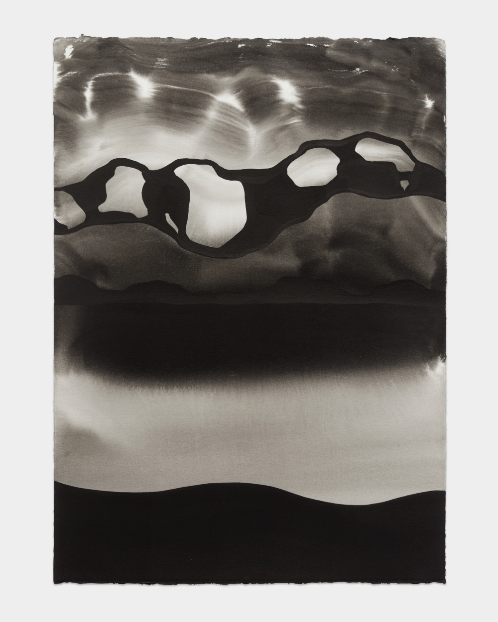 In rendering the earlier paintings, Wolf worked like a graphic artist, intent on capturing the structure and beauty of the natural forms. But this hard-won specificity gave way to a looser, sexier, and more fluid blend of ink mixed with water from the chosen sites. Metaphorically, he is letting the pond and the lake paint themselves. Contrast Dead Trees Hand Hollow from 2011 with Hand Hollow from 2012, which could indicate a hinge point. Over the course of thirty years, through landscape imagery and materials brimming with emotional content – see, especially, Phillips Preserve – Wolf has produced a body of work that reflects an artist continually pursuing, and learning to convey, an inner life.