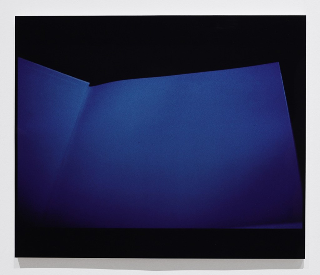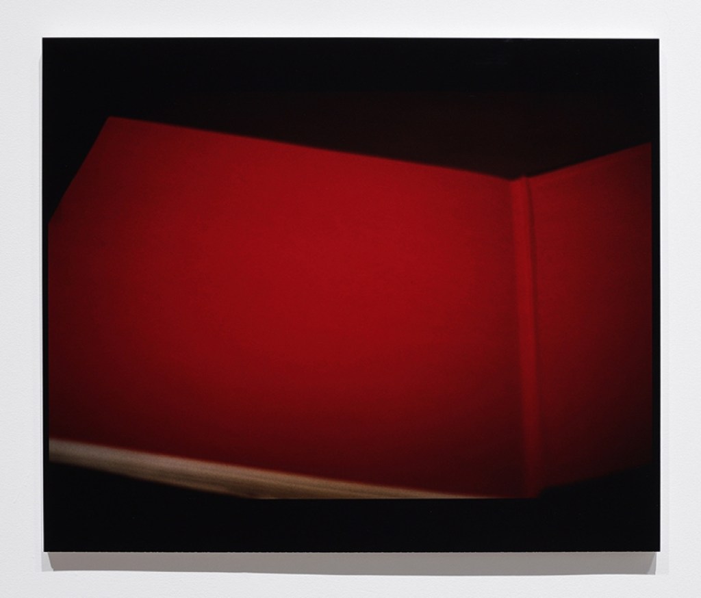 I was struck by how much both bodies of work evoked states of mind. The photos manifest the kind of sustained focus on a quotidian object that renders the familiar strange. Viktor Shklovsky, the Russian theorist and critic, introduced the concept of defamiliarization in 1917 in an article titled “Art as Technique.” According to Shklovsky, art’s primary function is to get viewers or readers to slow down and truly see the world. The lighting in Maul’s photographs is dramatic. The shelf of books appears naturally lit, perhaps from a window to one side, creating an undulating rhythm as the light touches some spines and misses others. The intensity of the color in the other three photos made me think of experiences I had with mescaline many years ago. All four photographs are set against a black ground, giving them a forensic quality that accentuates the drama of nestled geometries mediated by an uneven cast light.