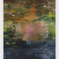 Contributed by Kun Kyung Sok / “Pouring Water Into Water,” Sarah Martin-Nuss’s first solo exhibition at the Rachel Uffner Gallery, comprises paintings and drawings that immerse viewers in fluid abstract landscapes inspired by marshes she remembers from her youth on Texas’s Gulf Coast. The paintings initially suggest serene swamps, their surfaces reflecting the sky and surrounding features. Deeper scrutiny uncovers two worlds closer by – one above the water paced by reeds swaying in a wet mist, and another below it teeming with aquatic creatures shimmering in the sunlight.