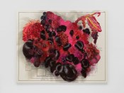 Contributed by Julia Bland / The eleven canvases in Firelei Báez’s current exhibition “Americananana” at James Cohan Gallery continue her decades-long practice of painting directly on found maps and printed materials. By activating the surface with historical references, Báez calls into focus the dual nature of the painted gesture as both action and erasure. While considering what relevant details have now vanished behind an outstretched arm or pale yellow swath, one might also wonder whether any canvas is ever truly blank.