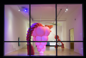 Contributed by Fintan Boyle / A sense of serious satire has pervaded Nancy Davidson’s work for years, and it is on prominent display in her show “Braids Eggs and Legs: A Wandering,” installed in two large galleries at Catskill Art Space alongside Matt Nolen’s work. Davidson has long been a fan of morselized language and sundered bodies, which in theory would make her work fertile ground for the psychoanalytically inclined. Yet here she elides the sexual menace and violence that, say, Melanie Klein offers. Instead, she wanders, as her title announces.