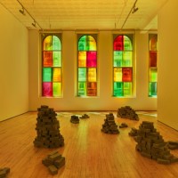 Contributed by David Carrier / Spencer Finch is fascinated by Japan, which he first visited some 50 years ago, when he was a teenager. “One Hundred Famous Views of New York City (After Hiroshige),” his current exhibition at James Cohan Gallery, includes four installations grounded in that experience. Fourteen Stones, inspired by a Japanese Zen garden and made with ordinary concrete bricks, encompasses simulacra of fifteenth-century garden stones. Even these banal objects, Finch suggests, warrant contemplation. For Moonlight (Reflected in a Pond), he has installed stained glass to evoke Japanese moon-viewing. Four LED sculptures present images that recast traditional Japanese haikus through lit color schemes. And Finch’s 42 watercolors reference Utagawa Hiroshige’s renowned One Hundred Famous Views of Edo, made in 1856–58, through present-day New York.