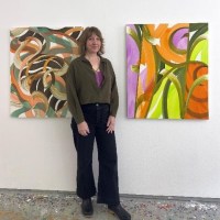 Contributed by Sharon Butler / This March I am delighted to welcome Stephanie McMahon to the Two Coats of Paint Residency Program. Stephanie lives and works in Alfred, New York, where she is a professor at SUNY Alfred and co-founder of the Alfred/Düsseldorf MFA in Painting and Residency Program. Up in Western New York, she is surrounded by an unruly and tangled 17+ acres of forests, fields, and ravines. While her rural environment has informed her paintings, it is the visual form of the twisting branches, leaf shapes, and shifting color that most fascinates her. Stephanie’s primary interest is the activity of painting itself.